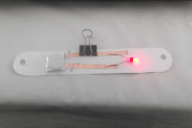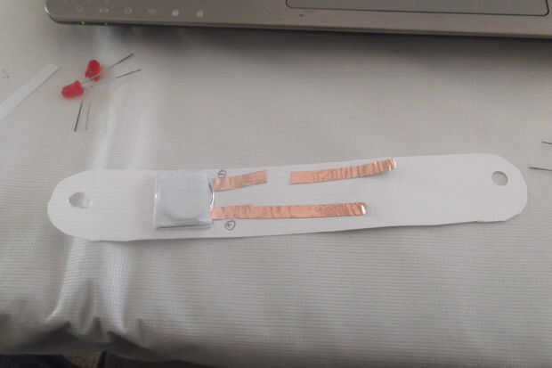Materiales necesarios:-Tijeras-Impresión de una plantilla del circuito de papel-Cinta de cobre.-1 luz de LED-2 bateríasPaso 1: Encontrar el tamaño perfecto para la cinta de cobre para la plantilla.Antes de cortar la cinta de cobre, coloque la cinta s