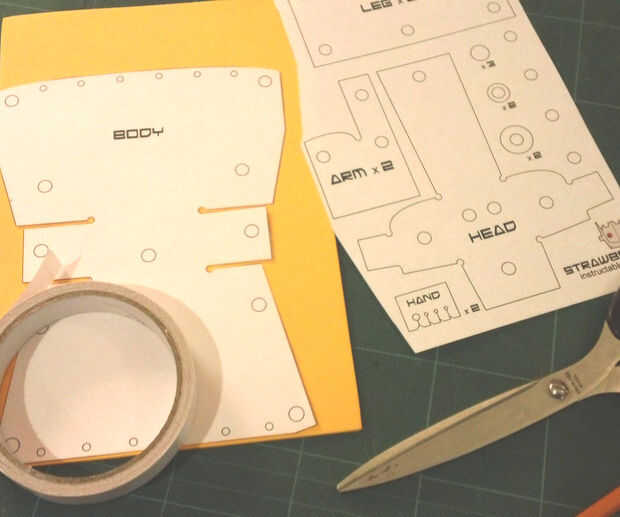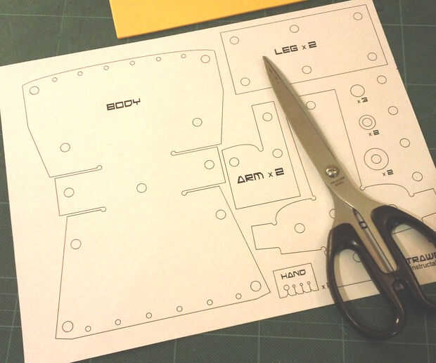 - Cortar las piezas de papel con tijeras y perfore los agujeros con un punzón. A continuación, trace con cuidado alrededor de los patrones de papel a la espuma.