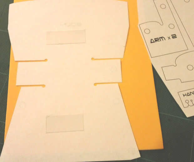 - Me parece que es mucho más fácil a los patrones de papel cortado a la espuma de la cinta temporalmente con cinta de doble cara. Luego cortar las piezas con el papel en su lugar. Así, sólo tienes que perforar los agujeros de una vez.