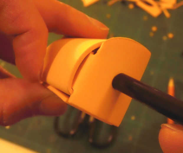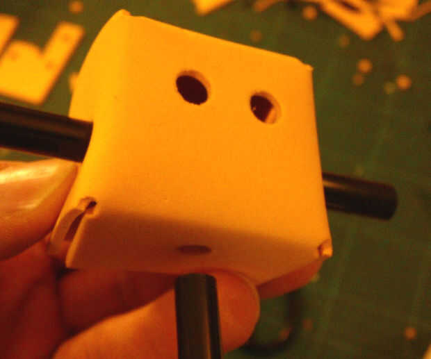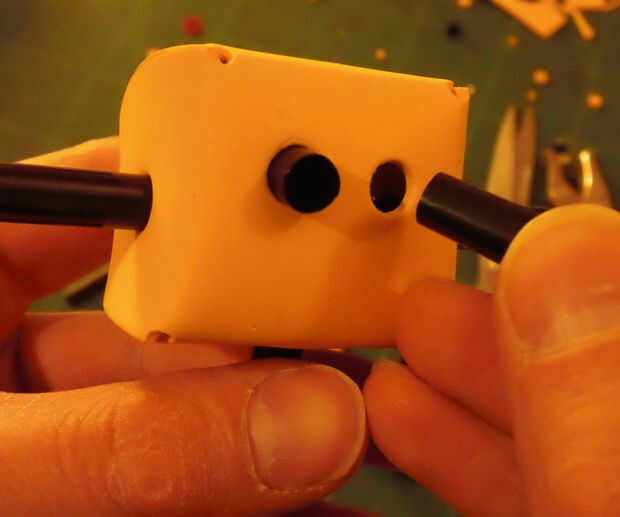 2. Seguir de cerca las fotos y una vez que tenga los agujeros alineados correctamente, instalar una paja a través de los orificios del oído.