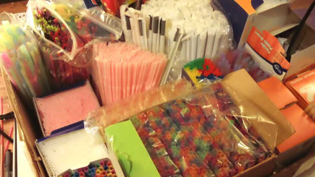 Strawbees son conectores de plástico que se pueden utilizar para hacer los modelos de 6mm pajitas. Los modelos resultantes son de peso ligeros y una buena base para un robot de bot buzz simple utilizando un motor pager y pila de monedas.Puede mantene