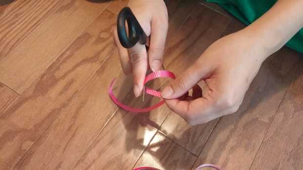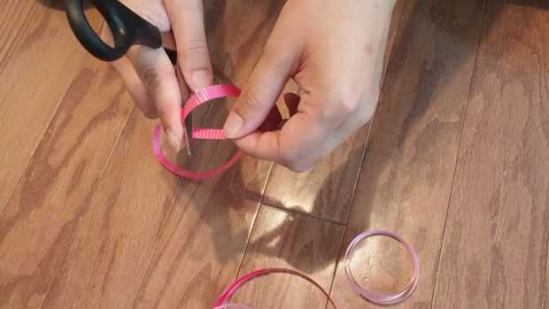 Aviso de la cinta tendrá un rizo natural a él. Sujete un extremo de la cinta en una mano, con el lado de enrollamiento hacia usted.