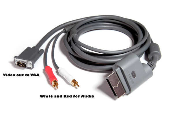 Para la salida de Audio tendrá que utilizar los cables de componente o AV suministrados para el Xbox 360.VOLUME para ese proyecto va a utilizar una Xbox al Cable del VGA ya que tiene la entrada de la Xbox y el blanco y rojo Audio salida, que es lo que necesitamos. Se puede utilizar cualquier cable de Xbox 360 que tiene entrada de Xbox y blanco y rojo Audio salida.
