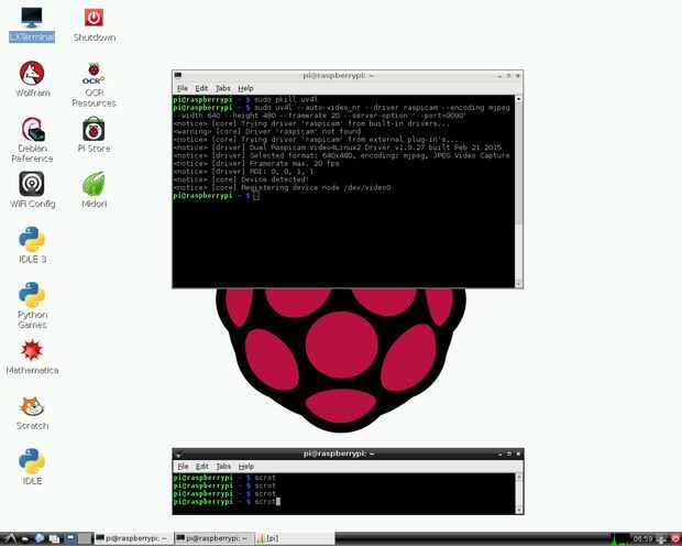 $sudo uv4l - nopreview--auto-video_nr - raspicam controlador--codificación mjpeg--640--altura 480 framerate--20--server-opción width '--port = 9090'--opción de servidor '--max-cola-conexiones = 30'--opción de servidor '--max-corrientes = 25'--opción de servidor '--max-hilos = 29'