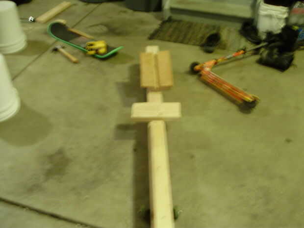 este es el segundo luge de la calle que he hecho. Los camiones se toman de un patín de $9, y he añadido viejas ruedas de roller-blade en ellos. Mi original va hasta 25 millas por hora, y creo que este va a ser la misma. (yo no puedo montarlo, ya que es invierno.) Y sí, sé que el título lo dice #2... mi primer está por venir. Se hace de una pieza larga de 2 x 4, un par más pequeños trozos de madera (también 2 x 4,) camiones patineta, roller-blade ruedas y dos piezas de madera contrachapada. Para construir, basta con mirar las fotos, que es auto explicativo. Asegúrese de no poner el conjunto frontal de camiones en el muy delantero. Ponerlos cerca de un tercio del camino desde la parte delantera.