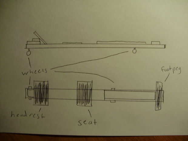previamente hice un street luge e instructivo, sin embargo mi diseño anterior no era el mejor. Todavía trabajó bastante bien y fue rápido en empinadas colinas, pero era incómodo viajar y no iría muy rápido en menos empinadas colinas. Recientemente hi