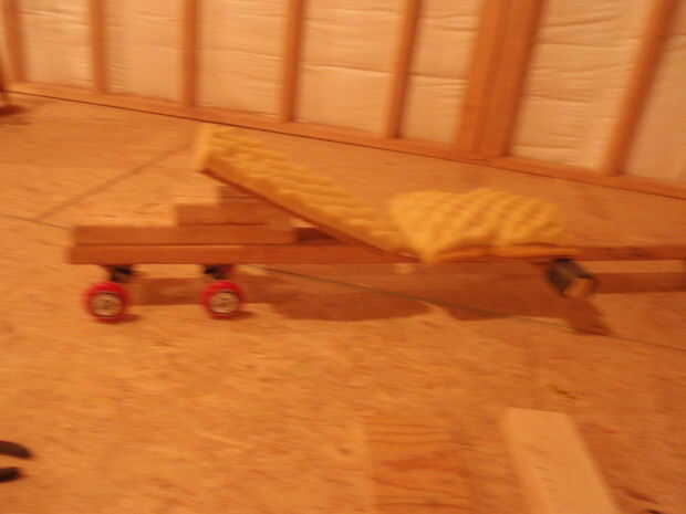 En mi calle luge, agregué relleno a los restos de glúteos y espalda. También usé un aislamiento de la pipa (a la izquierda de mis múltiples guitarra soporte del"") como relleno en mis asideros. He añadido en un gancho para hacer más fácil arrastrar detrás de me. También puso en un tercer par de camiones y consiguió nuevas llantas para el nuevo par de camiones.