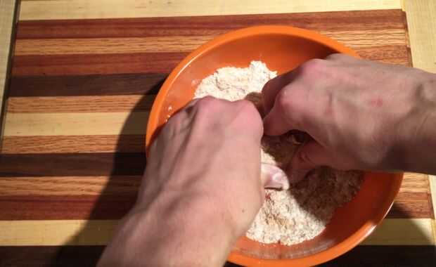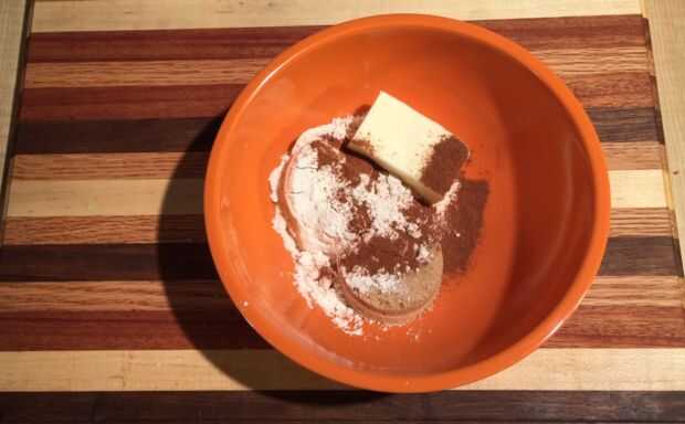 1. Combinar 1/2 taza de harina de AP y 1/4 taza de azúcar moreno ligero embalado en un tazón pequeño.