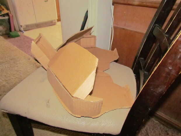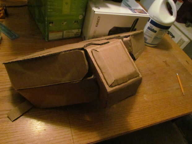 Delantero Eureka tiene tal un pecho salientes distintivo pensé que empezaría aquí. Corté un pedazo de cartón por la mitad de la parte superior del pecho entonces sólo utiliza una plantilla y cortar la otra mitad. todas las piezas se cortan sólo como lugar pegado en caliente y necesita... Ah, caliente pegamento, que sería sin ti. Infiltró detrás de un centro comercial pequeño y compactarse el cartón de reciclaje vertedero. ¿Cualquier conjetura de dónde proceden estas piezas?
