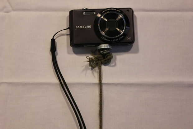 Hice un trípode improvisado, también conocido como un biopod. Funciona al pisar la cuerda y poner fuerza en la cámara para estabilizarlo (cuidado de no tirar demasiado fuerte ya que puede romper la cámara)