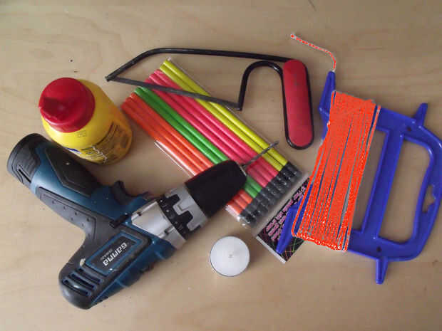Color o gris, no importa. Mina no tenía ningún punto pero un pequeño borrador en un extremo. Hace el extremo derecho con una sierra de metal pequeño. 20 a 30 lápices hacen un buen comienzo.