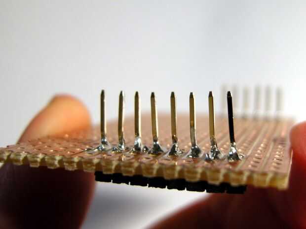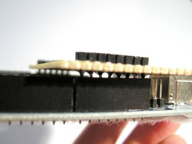 Mantenga su soldadura tan aseada posible y no intentar conseguir cualquier soldadura más lejos encima de las clavijas que usted necesita pues esto dificultará insertarlos en los zócalos de la placa Arduino.