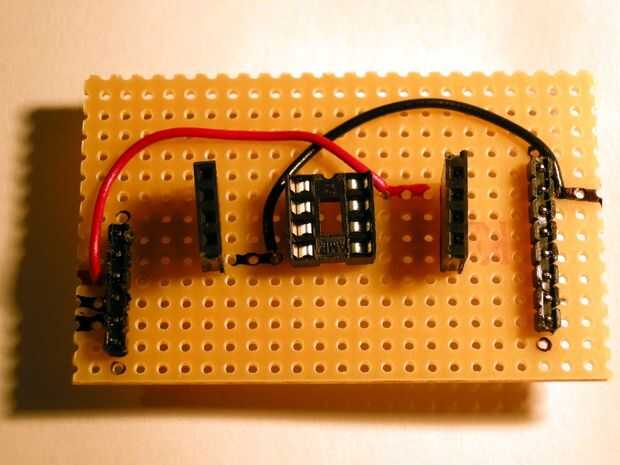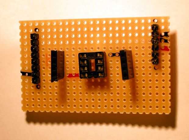 Entonces usted necesita soldar un cable entre la conexión de 5V para el Arduino y el pin físico 8 en el zócalo del IC.