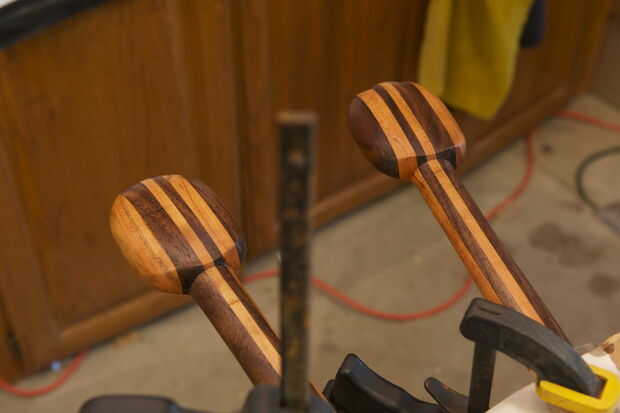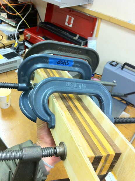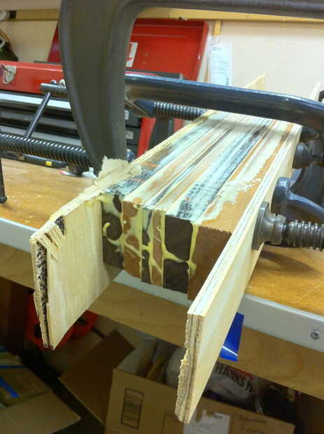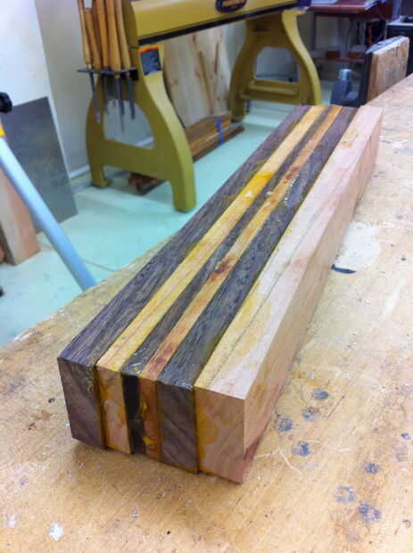 Si tienes una buena mesa Sierra, theres una oportunidad sólo puede pegar sus listones juntos como es. Si todavía tiene algunos baches, hoja marcas, quemaduras, etc., en sus tablillas, recomiendo unirse a ambos lados de cada listón. Su laminado va finalmente en un torno y va girando a 2000 rpm, por lo que quiere que las juntas de pegamento fuerte, bastante apretado por lo que la pieza no desintegrarse. También, la broca de torno podía coger un borde común, causando una vez más su pieza a desintegrarse si las articulaciones no estén apretadas.