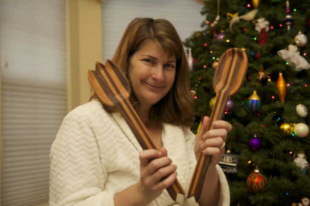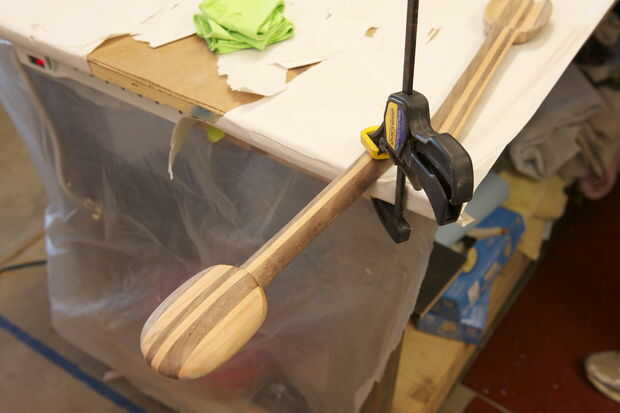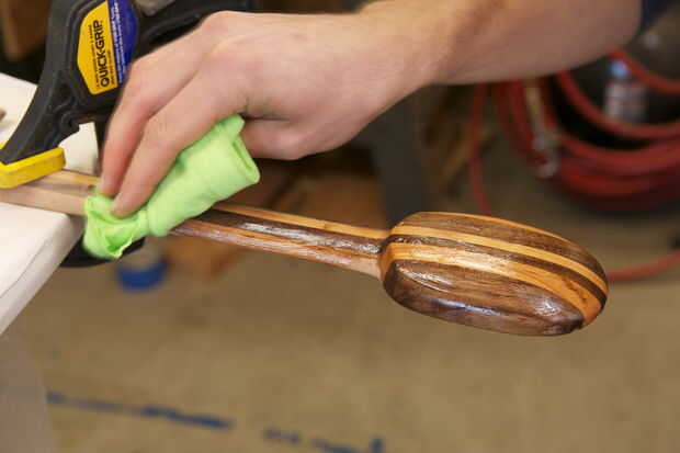 Usé un "salad bowl finish" al final y sello de las cucharas. Ensaladera no es tóxico y se seca muy duro cuando filtra en la madera, por lo que es excelente para carpintería alimenticia. Se puede utilizar para el sellado de básicamente cualquier productos de cocina de madera, de troceo para cucharas de cocina.