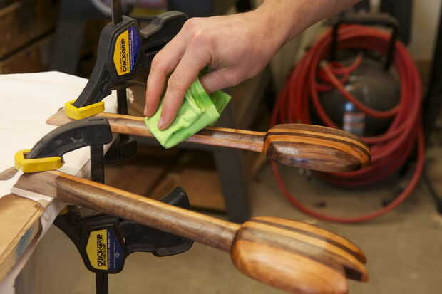 Para acabar con ellos, arena les con granos progresivamente más finos, ir hasta 600, y luego lo pase un tac-paño para eliminar todo el polvo de la sierra.