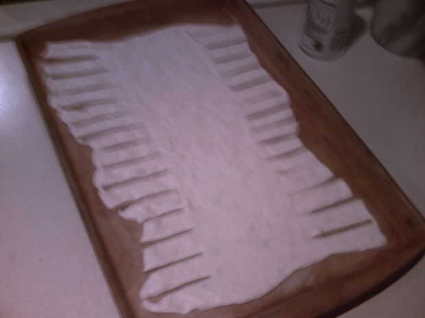 se cortan las tiras como se muestra en el cuadro acerca de 10-14 tiras a cada lado