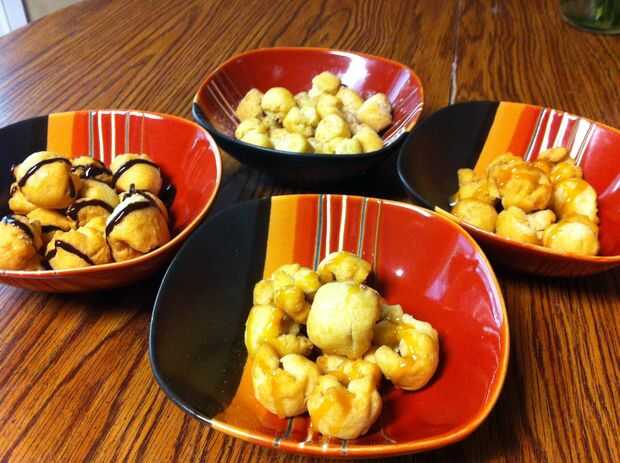 a la hora de la comida italiana nunca me he aventurado fuera de espagueti y la lasaña. Italianas postres deliciosos ha buscado y me encontré con struffoli. Struffoli es una masa frita profunda que está cubierta con una mezcla de miel de azúcar. Estaba intrigado y ideas vinieron las inundaciones porque se trata de una excelente comida para añadir a cualquiera de las partes y usted puede Agregar cosas para hacer para cualquier ocasión y puede utilizar una variedad de sabores o chispitas de colores. Para mi Instructable I darle la receta para la masa y luego decirle lo que hice para hacer mi struffoli personalizada. Había hecho miel mantequilla de maní tradicional, canela, chocolate, relleno manzana caramelizada, smores rellenos y tortuga de peluche.