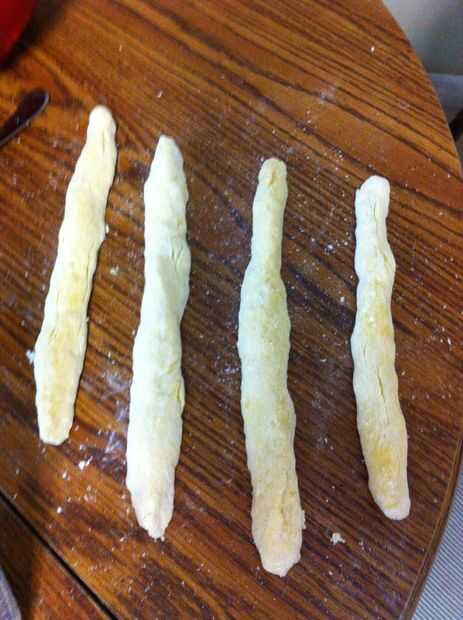 Estirar cada pieza como una cuerda sobre la anchura de su dedo índice y 12 pulgadas de largo.