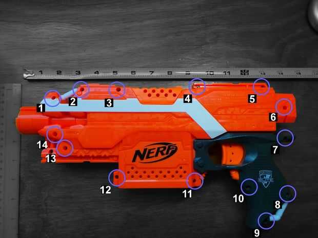 Una vez que la cáscara esté alineada, poner los tornillos en. Recuerde que deben volver tornillos 4 y 5 (los tornillos cortos) en los agujeros indicados. El resto de los tornillos son intercambiables.