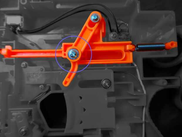 Desenroscar el tornillo de centro (en un círculo en la imagen) desde el shell de blaster.
