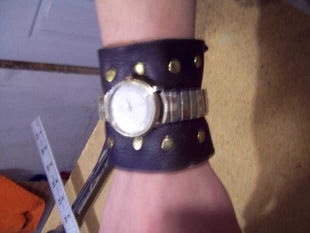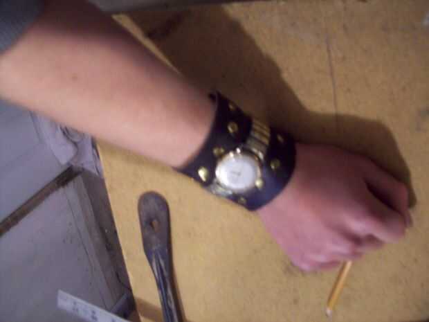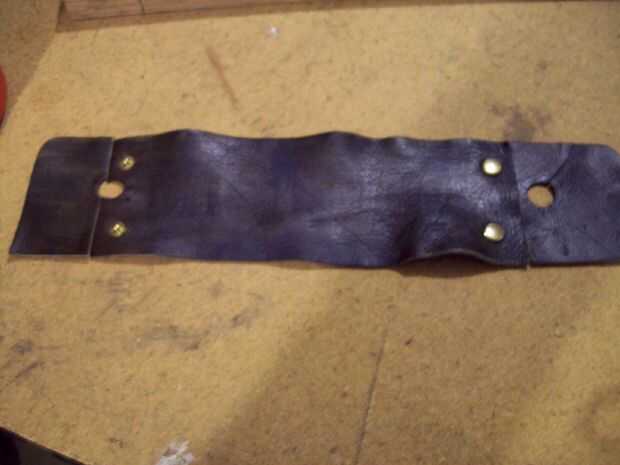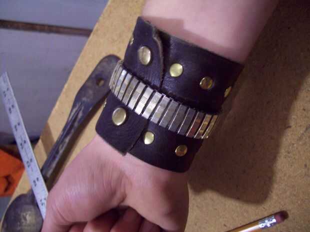 Hace mucho tiempo mi padre trabajaba en una tienda de cabeza de finales de los 60s principios de los 70. Hizo trabajo de cuero personalizados, chalecos, bolsas, adornos varios, etc.. Sus herramientas de trabajo en cuero viejo todavía están en ese sótano, y he recogido un poco del oficio. Aquí está un ible en cómo hacer un brazalete personalizado.