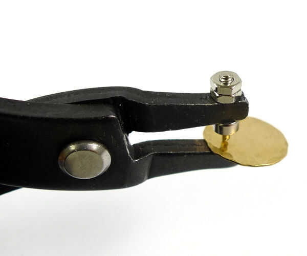 Con los puntos del lugar de marcador permanente en los discos de latón donde quiere perforar los orificios. Cuidadosamente perforar cada uno con el sacador de agujero de Eurotool. Martillo del agujero en cada disco para aplanar los bordes del agujero.