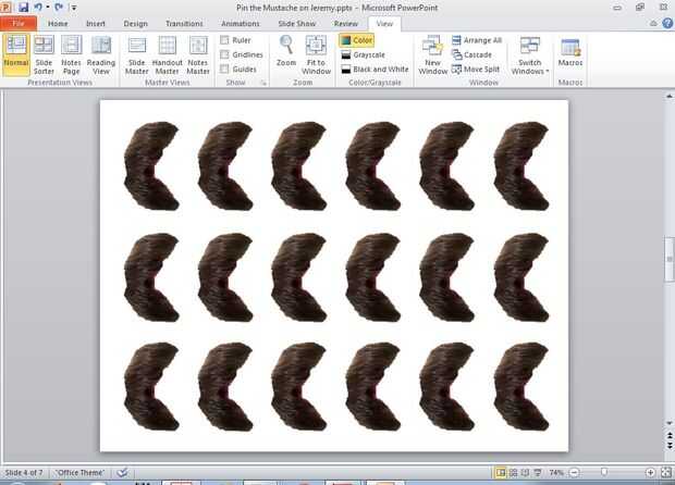 Pasé la imagen recortada del bigote que aún tenía su nitidez de imagen y color completo a una nueva diapositiva vacía y lo duplica muchas veces y espaciados de modo que podría ser fácilmente cortan apartes pero cerca suficiente podría conseguir tanto como pude en la 1 página para las piezas del jugador.
