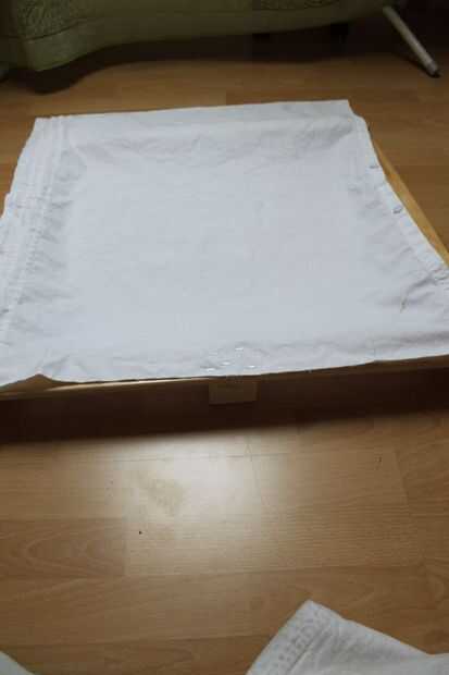 2 - estirar a una esquina en el otro lado y grapas en la parte superior, así