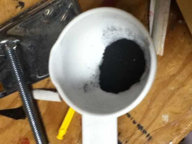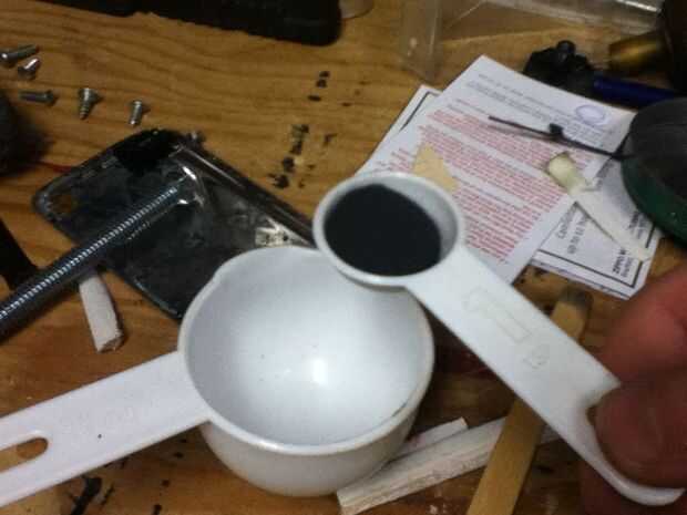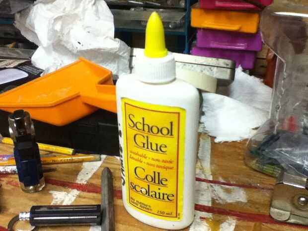 mida una vez listo el molde, 1 cucharada de polvo. Si tienes un poco más o menos que está muy bien pero si tienes substancialmente más, ahorrar para una segunda aguja. Vierta la cucharada de polvo en la taza de la mezcla y añadir un chorrito de pegamento blanco artesanal.