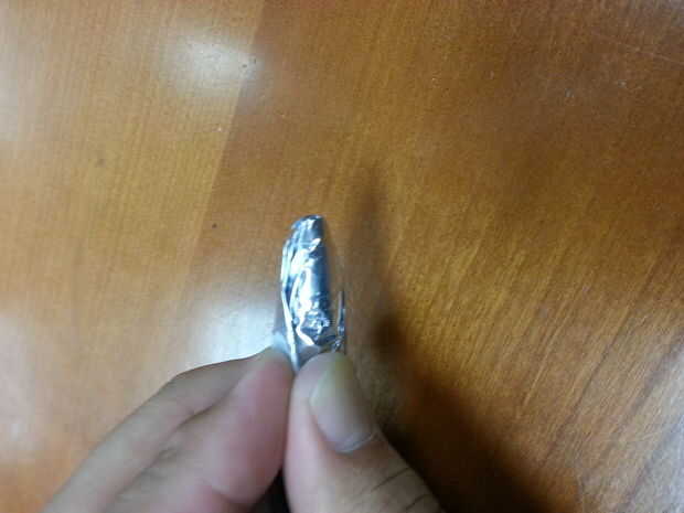 Paso 2: Envolver el trozo de saco firmemente alrededor del extremo de su pluma.