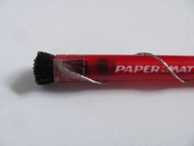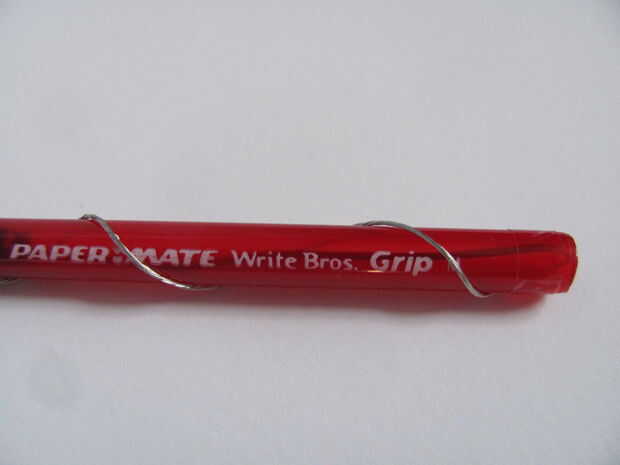 Ahora lo que hacen es envolver el alambre sin aislamiento alrededor del tubo. A continuación, sellen el cable cerca del frente de la pluma para asegurarlo.