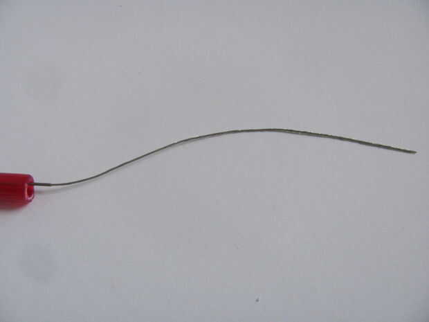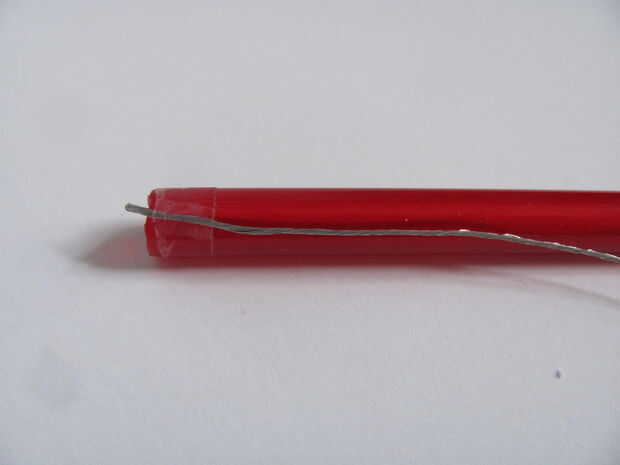 Después de todo eso, es tiempo para quitar todo el resto del cable que sale del fondo del tubo. Qué hacen ahora es asegurar el alambre con una pequeña tira de cinta.