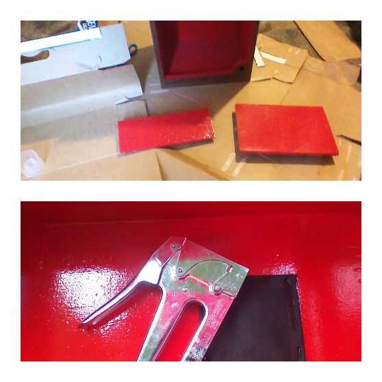 No tienes que cubrir cualquier orificio en la parte de atrás si no quiere, pero simplemente tomé algo de tela negra tenía colocación alrededor y usa una engrapadora para grapas sobre la abertura. (También tomó un marcador negro y coloreado las grapas negro así no sensibles)