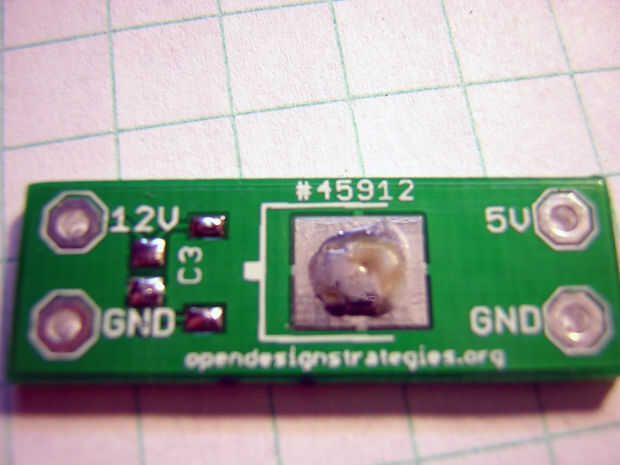 A continuación, voltee la placa y hacer lo mismo en la parte inferior. Antes de la soldadura de las almohadillas, y luego utilice unas pinzas para localizar los condensadores donde desee y usar el soldador para derretir la soldadura para asegurar la conexión.
