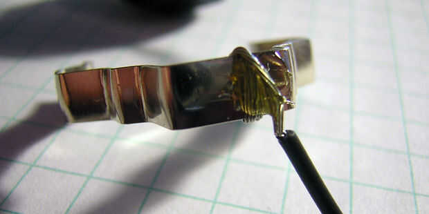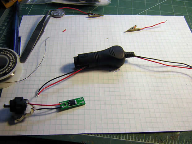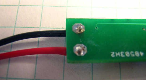 Con los componentes de la PCB sueldos firmemente en su lugar, a continuación pasamos a la sección de coche a bordo. Que cortar dos cables cerca de 1.5" de largo y despojados de aproximadamente 3/4" de los cables y luego la cantidad normal de los otros extremos (para los orificios de la almohadilla de soldadura).