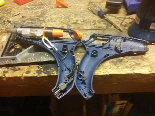 3) conjunto de el pegamento pistola sobre una mesa o banco y con cuidado apalanque aparte-para ver cómo va juntos antes de tirar él aparte y la dispersión las piezas. No son terriblemente complicados, pero es sin duda útil para ver cómo está orientada la primavera y cómo se establece el mecanismo.