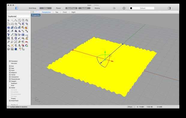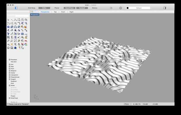 Después de la visualización alcanzado equilibrio, presioné el botón exportar en la gran aplicación de Scott. Esto creó un Script de MEL. Corrí el script de MEL de Maya. Seleccionado las curvas (hechas por ejecutar el script) y abuhardilladas (superficies -> Loft) ellos. Luego seleccionar la superficie y exportado como un fichero IGES (puede que necesite cargar IGES importador / exportador el plugin si no ves la opción para IGES). Para activar el Plugin "DirectConnect.bundle" (ventana -> Settings/Preferences-> Administrador de plug-in).