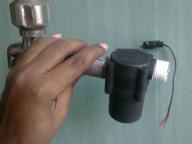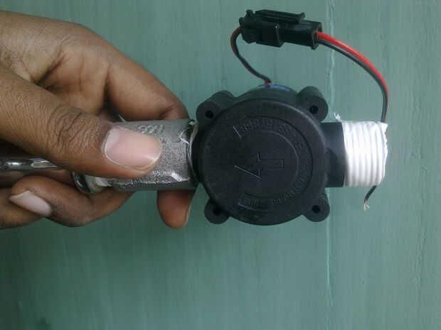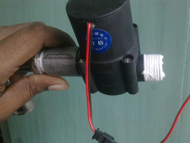 Esté con grifo de agua en un lado (cabeza de flecha) del generador hidráulico. Ahora Envuelva algún grifo de sello a otro subproceso del lado del generador que tienen conectados a la tubería de agua.