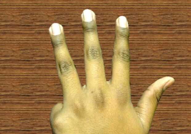 Mano izquierda es el marcador de tenss, como se va escribiendo decenas Coloque a la izquierda. Sólo mediante el uso de una mano puede contar de 0 a 9. Sólo por decir 10, 20, 30 en vez de 1, 2, 3. Ver las imágenes sobre cómo se representan los dígitos.