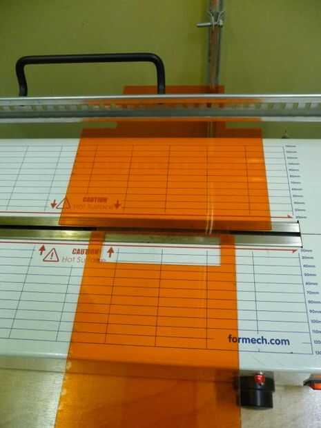 Marcó la ubicación de la curva, calienta para arriba y luego lo había doblado. La plantilla de refrigeración permite mantener la pieza en un ángulo del sistema hasta que el plástico se enfría y establece.  (La foto de la tira de calor es de otro proyecto).