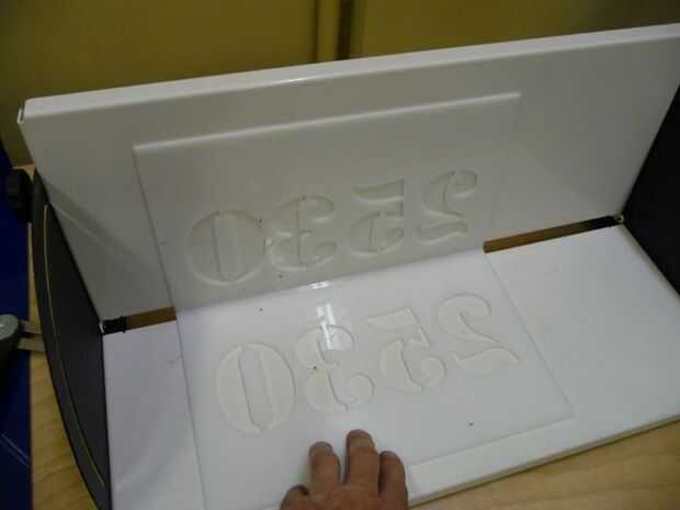 En TechShop utilicé el cortador del laser para cortar las letras en acrílico. Después de calentar la dobladora de tira calor, transferir la medida del ángulo a un transportador y fijar el ángulo de la forma de enfriamiento para que coincida con el ángulo de la banqueta.