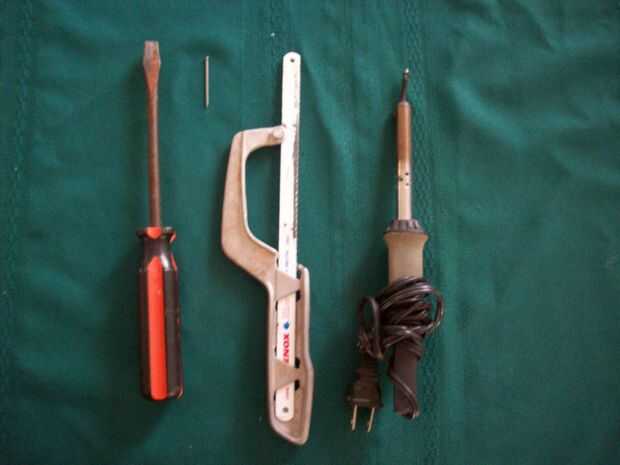 Prepárate tus herramientas. 1. un clavo 2. una sierra para metales 3. un soldador 4. y algún tipo de objeto contundente que puede golpear el clavo con (un martillo sería bueno)