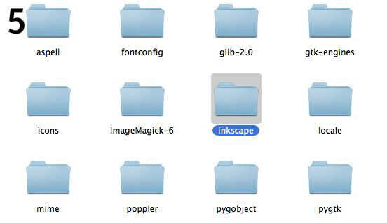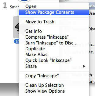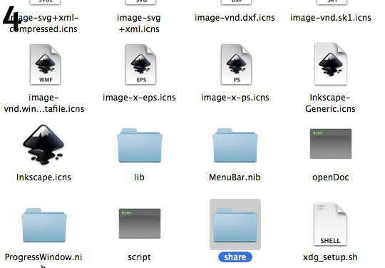 Lo primero que necesita hacer para conseguir la extensión en Inkscape es mostrar el contenido del paquete de Inkscape. Lo siguiente que tienes que hacer es doble clic en contenido. Después de esto Abra la carpeta de recursos. Una vez hecho esto, abra la carpeta de compartir. después de vaya y abra la carpeta de Inkscape. Esto le llevará finalmente a la carpeta de extensiones. Ahora puede tomar el contenido de la carpeta que descargaste de Internet y arrastre los cuatro de los archivos en la carpeta de extensión de Inkscape.