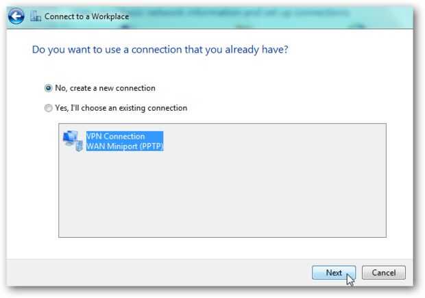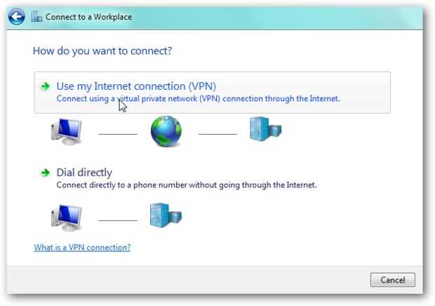 Seleccione la opción de usar tu conexión a Internet para conectarse a la VPN.