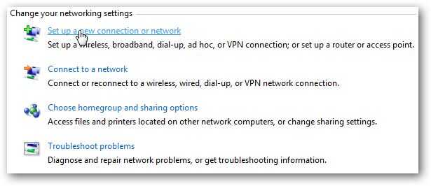 En la red y centro para compartir del Panel de Control, haga clic en la opción para configurar una nueva conexión de red.