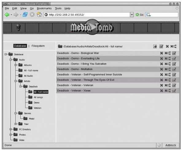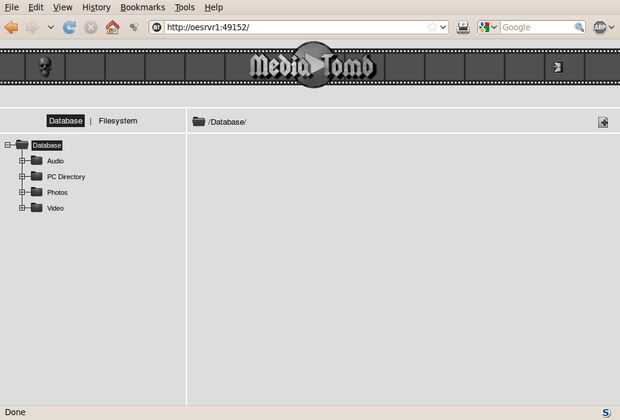 Para agregar a mi carpeta de los medios de comunicación a MediaTomb, usar interfaz de web de MediaTomb. Señalo mi navegador a la dirección IP de mi servidor y el puerto se está ejecutando, como sigue: http://serverip:49152.