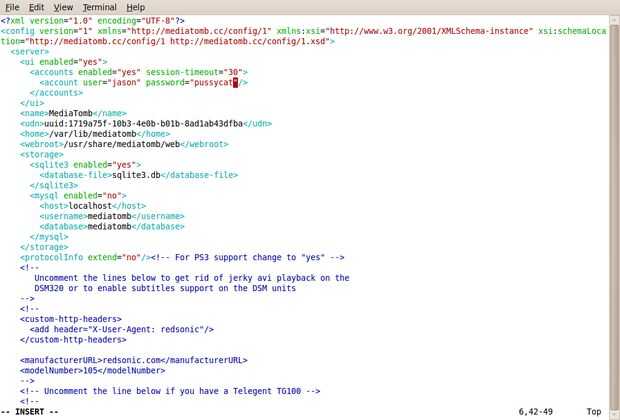 Para bloquear MediaTomb a un solo puerto, simplemente edite el archivo de configuración XML.