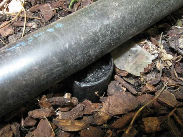 ACTUALIZACIÓN - el burlete no mantienen muy bien durante el invierno, por lo que tendrá que encontrar otra manera de tapar el agujero. Por ahora, sólo les dejo - he decidido que apuntando la púa x x hacia abajo no funciona a largo plazo, porque el agujero siempre se llena de suelo, incluso cuando le pongo un trozo de tuberia de riego dentro del agujero. Por lo tanto, recomiendo tener a estos "emisores" en un ángulo hacia arriba, como se muestra en la primera foto.