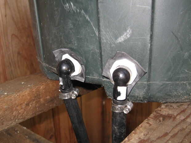 Después de que has puesto en la conexión, atornille en el adaptador de codo, aplicar cinta de teflón a las roscas en primer lugar y luego usar una abrazadera pequeña (también con cinta de Teflón alrededor del adaptador) para fijar el extremo de la tubería de riego al tanque. Puede también insertar una válvula en cada línea. Esto podría ser útil si quiere agua algunas partes de su jardín más que otros, o si desea almacenar el agua en el tanque antes de soltar al jardín.